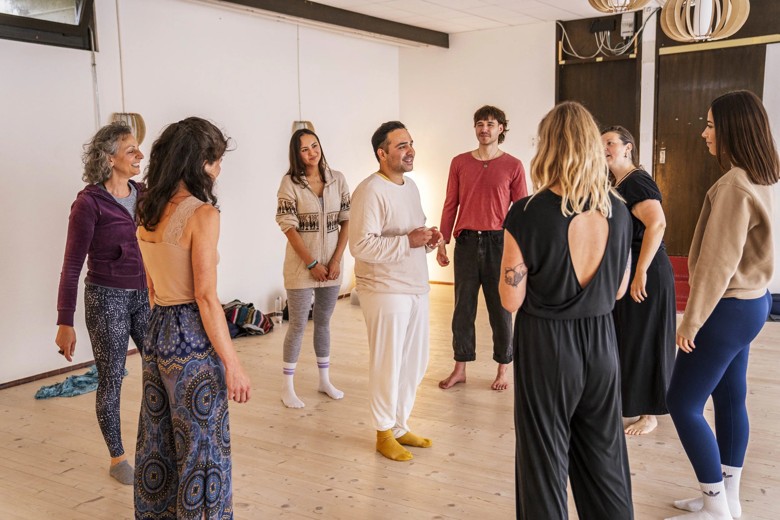 De sessie vindt plaats in de Happy Body Dojo, een rustige plek die uitnodigt tot verbinding.